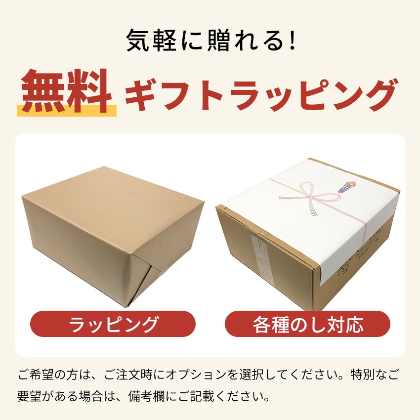 | ギフト包装 | 簡易ラッピング、熨斗掛け、メッセージカード対応しております。ご希望の場合は、備考欄に記載してください。 |