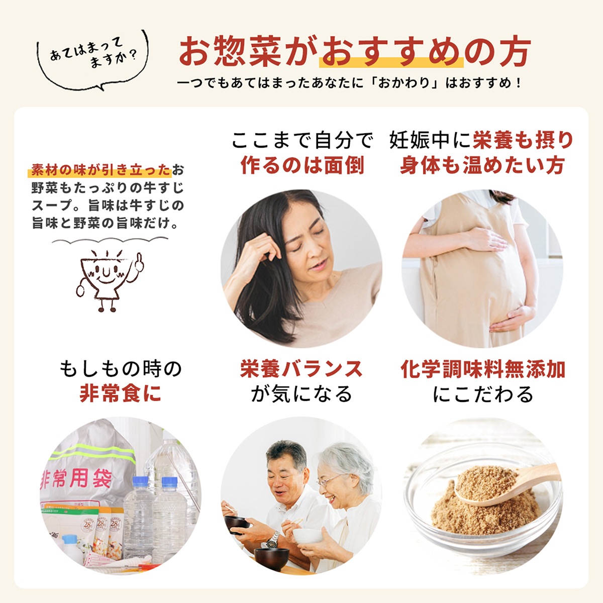 一人暮らしの方 栄養バランスを考えたい方 忙しい方 育ち盛りのお子様 単身赴任の方 妊娠中 産前産後 共働き