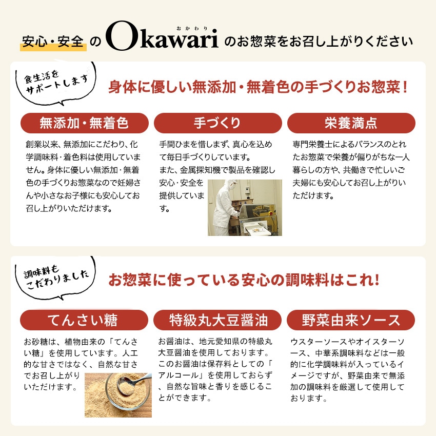 合成着色料不使用 無添加お惣菜なら「お惣菜Okawari」