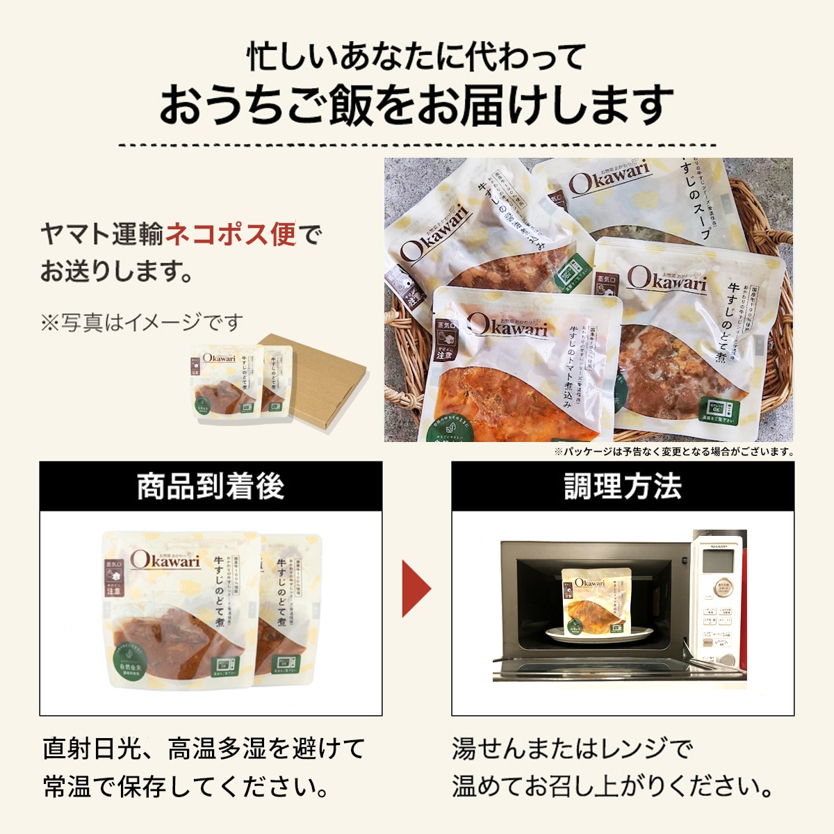 送料無料!【国産牛100%使用】牛すじトマト煮込み 2袋 (身体に優しい、電子レンジで温めるだけの化学調味料無添加のレトルトおかず)