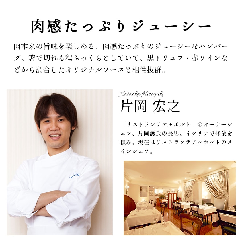 送料無料!【ラ・ベットラ・ダ・オチアイ 落合務監修】 牛肉100%ハンバーグと黒トリュフソース 130g×6パック (ソース180g) (あの有名なレストランの味がご自宅で味わえる)(工場直送商品)